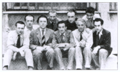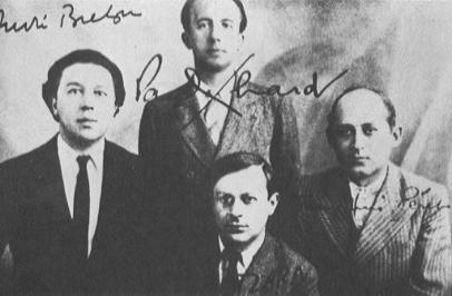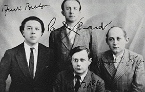 Aragon; unten: Pierre Naville, Simon Collinet-Breton, Max Morise,